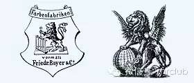 拜耳的第一个商标图案是只狮子站在圣劳伦斯殉难的架子上。这个商标是根据德国爱伯福市(Elberfeld)的盾形纹章所设计,那儿是当时拜耳总部的据点。然而,公司不断扩展,必须反映在新的企业标志上,到了1886年,这些较为简单的商标已不敷应用。