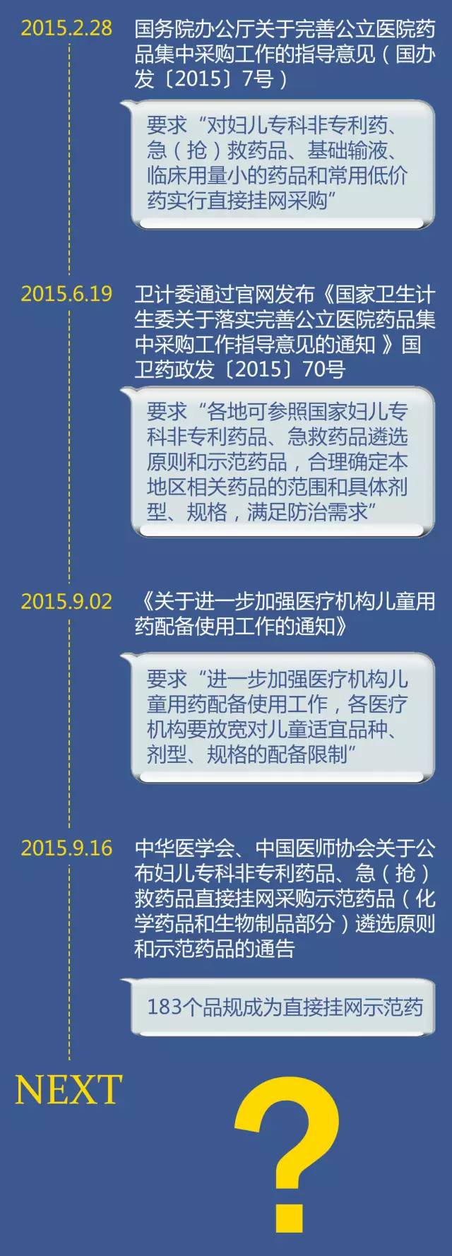 那么可以预见的是,各个省份对应的文件标准将会陆续出台,之前各地的药物招标部门都在探索阶段,而此次文件将对各省标准产生直接或间接的影响,由此引发的医药企业竞争将更加剧烈。但目前而言,妇女儿童用药仍是药企眼中的“香饽饽”,如果顺利进入各省的妇、儿非专利药目录,将会得到长远的保证。附:直接挂网采购示范药传送门(长按复制浏览器打开后下载)