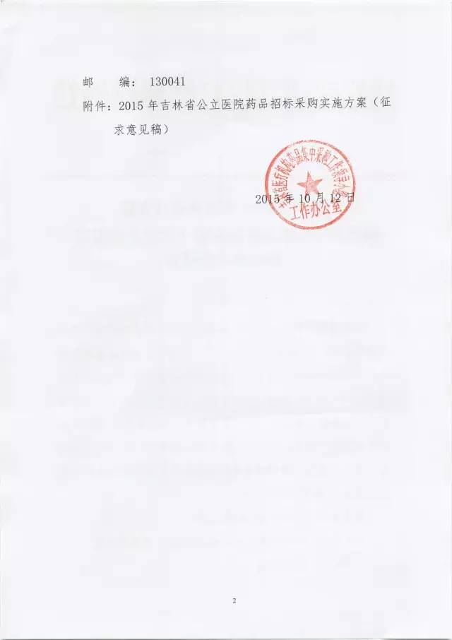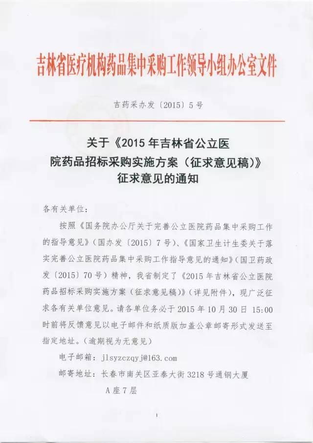 关于《2015年吉林省公立医院药品招标采购实施方案(征求意见稿)》征求意见的通知