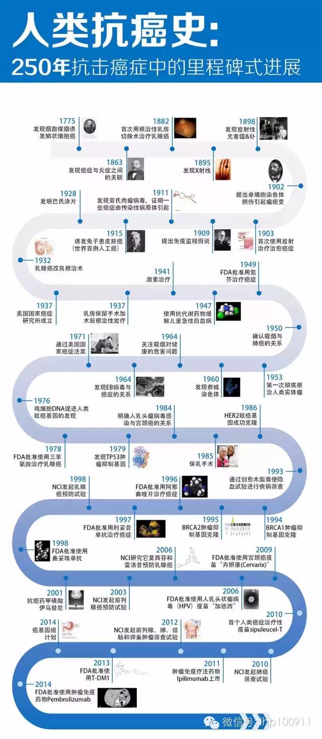 尽管数千年前,人类就已经认识到癌症的存在。但囿于技术所限,直到工业革命爆发,人类在抗癌研究上才逐渐取得突破性成就。科技发展日新月异的近250年到底有了哪些进展? 让我们一起回顾一下抗癌历史中那些里程碑式的突破: