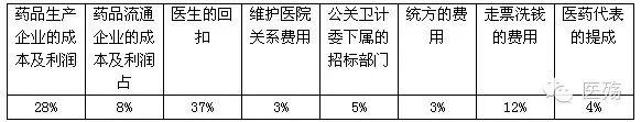 在市场经济的今天,竞争不可避免,包括药品在内的商品供应的规律是:谁在利益链条中控制权大,谁的利益就大,医生的处方决定着药品的销量,所以医生所占的比例最大,药品生产企业、药品流通企业和医药代表由于市场竞争,只能获得平均行业利润,不可能有暴利,由于政府招标、零差率、不得二次议价的政策让药品生产经营企业不得不给予招标部门、医院管理者、统方部门、医药代表一定比例的现金费用,为了洗出这些现金还必须花十多个点的洗钱成本。