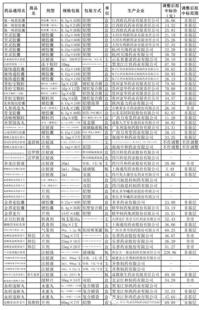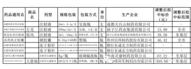 现将2015年度上海市医疗机构药品集中招标采购中标结果动态调整(第一批)的外省市中标价格信息及拟调整结果进行公示,详见附件。请各企业仔细核对以下信息:通用名、商品名、剂型、规格包装、单位、包装方式、生产企业名称、外省市价格及采购范围。
