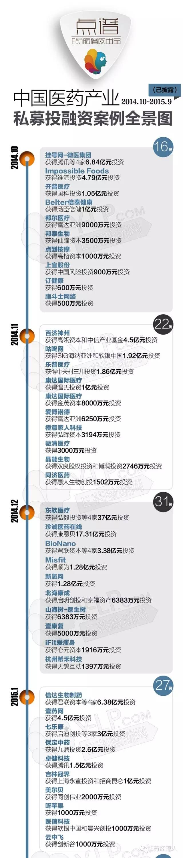 【投融资特辑】2015年中国医药产业私募投融资案例全景图一览