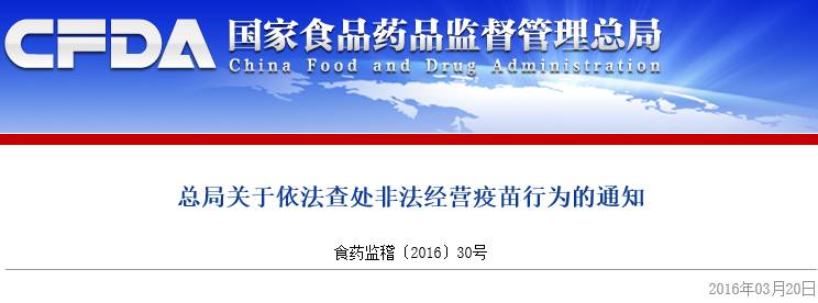 与此同时,3月19日晚间,国家食药监总局连发《总局关于依法查处非法经营疫苗行为的通知》和《总局关于非法经营疫苗案件查处工作有关事项的通告》两条通告,明确对非法经营疫苗案将进行重点查处。
