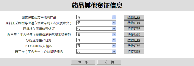 现在企业可以在“药品信息”-“明细信息”中填写相关资证了,只需按下“药品明细信息”页面中“基本信息”栏目内的“其他资证”按要求填写即可。其中各项资料的填写无须“申请变更”即可填报,待审核、已预审、已审核或申请变更中的品规也