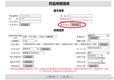 中填写相关资证了,只需按下“药品明细信息”页面中“基本信息”栏目内的“其他