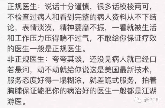 正规医生不会对你各种保证,而莆田系医生不管大病小病,各种吹嘘。目的就是为了先捞尽你每一分钱。