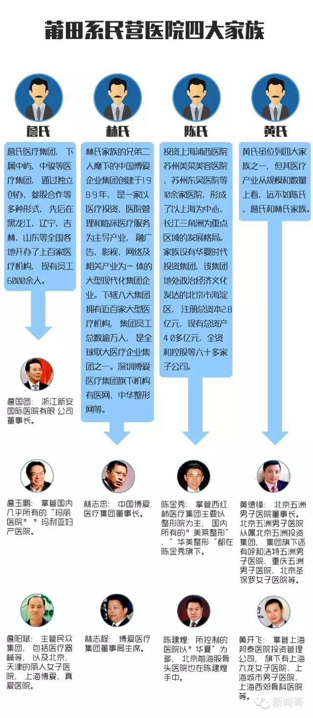 2000年后,国家鼓励民间资本进入医疗行业,莆田系一窝蜂地买医院、成立私人医院,逐渐形成四大家族↓↓