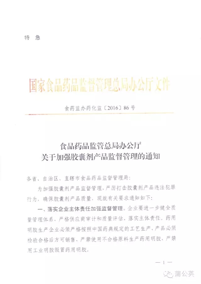 【特急】CFDA:关于加强胶囊剂产品监督管理的通知
