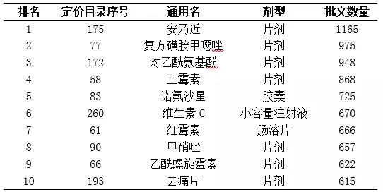 近日,食品药品监管总局统计了2018年底前须完成仿制药质量和疗效一致性评价品种的批准文号数量,总计289个仿制药一致性评价品种,包括17740个批准文号。(详见《289个仿制药17740个批文,多少企业面临生死劫?》)医药地理进一步注意到,在全国低价药物目录中,批文数量大于10 的共331种,独家品种总计57个(分剂型)。其中,批文大户前十由安乃近片、复方磺胺甲恶唑片、对乙酰氨基酚片等摘得。