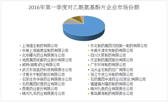 安乃近片和对乙酰氨基酚片同样存在行业集中度较低,产品同质化严重的问题。但相比之下,这两种低价药有向龙头企业集中的趋势。2016年第一季度,上海医药集团有限公司信谊制药总厂占了安乃近片销售总额的86.31%,而在乙酰氨基酚片的竞争格局下,上海强生制药有限公司夺了75.07%的份额。