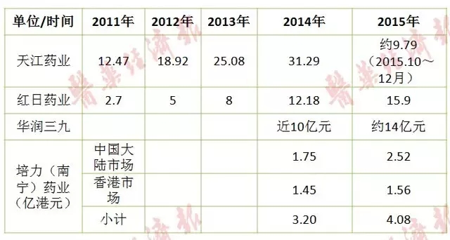 可见,天江、红日、三九三家一直行业先锋。