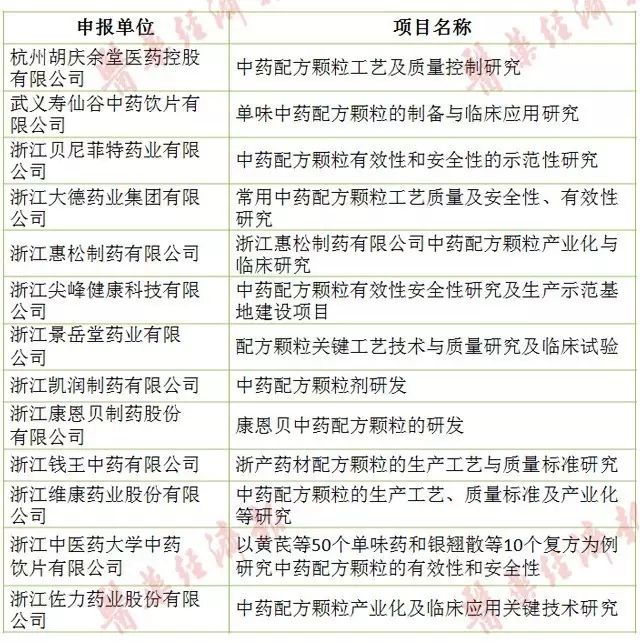 此外,仅浙江一省申报申报中药配方颗粒科研专项的企业就达13家之多(详见下表)。