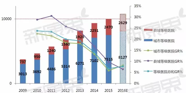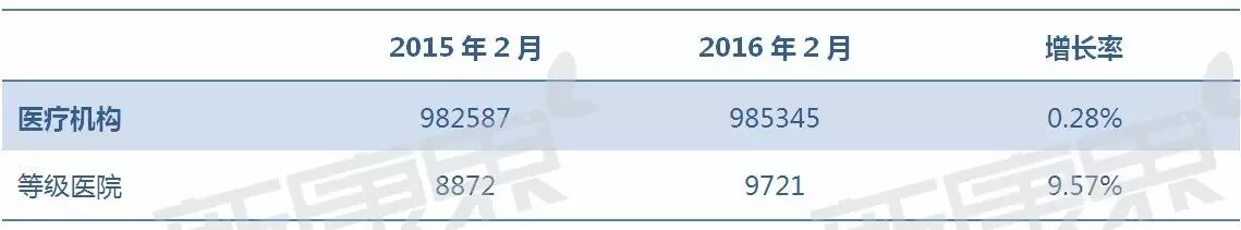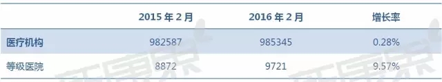 根据国家卫计委统计数据,截至2016年2月底,全国等级医院共9721个,与2015年2月相比增加9.57%,远远超过医疗机构整体增长水平。