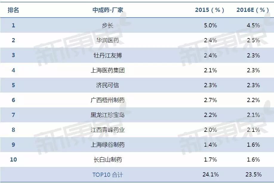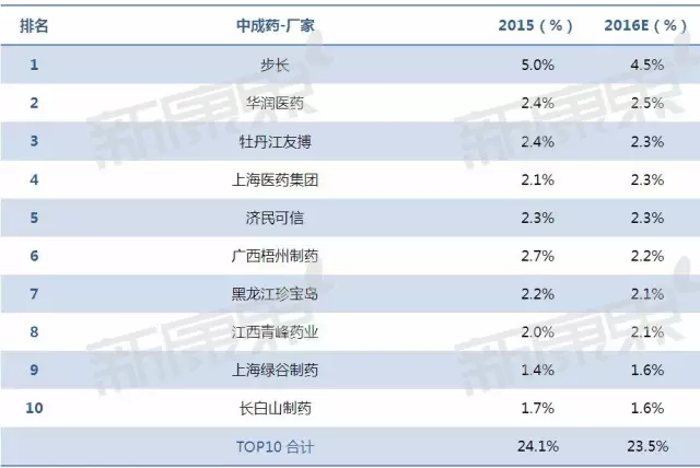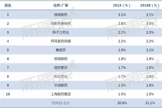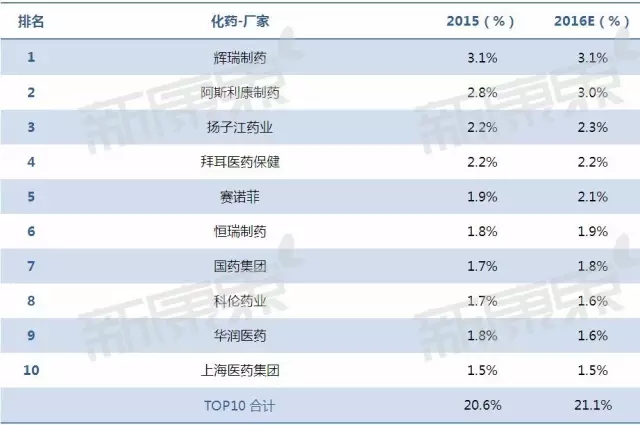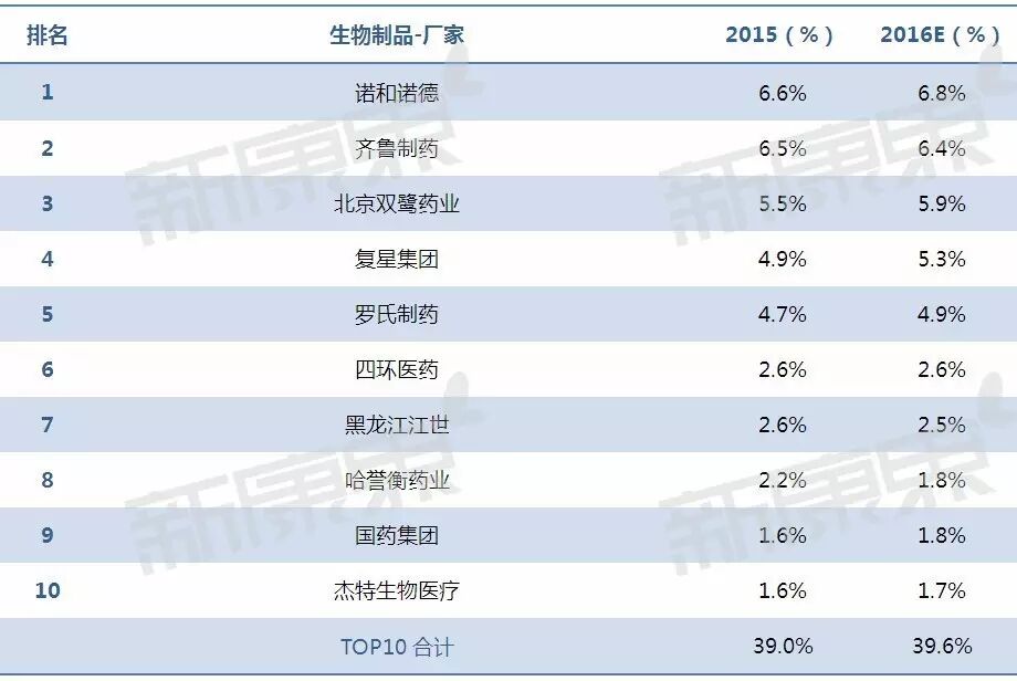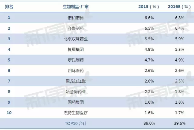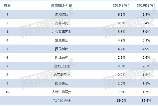 等级医院TOP10生物制品厂家销售额份额排行榜