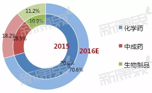 预计2016年化药的市场份额基本保持不变,生物制品市场份额持续增长,中成药市场份额小幅下滑。