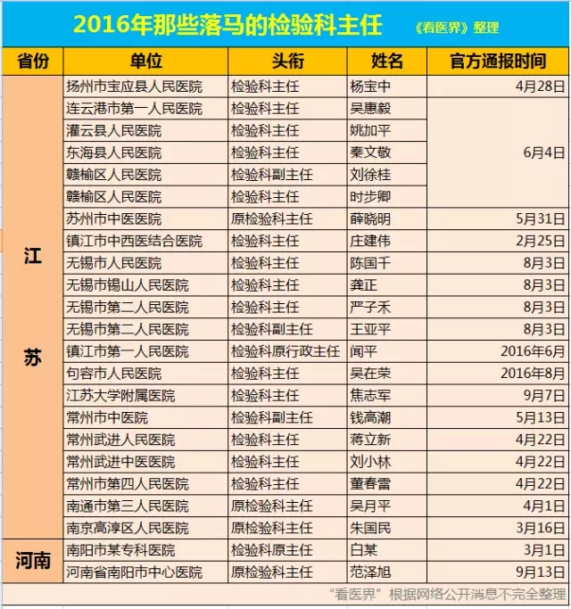 自进入2016年以来,江苏的医疗反腐风暴一再掀起医疗圈的小高潮,更有自媒体直呼“江苏检验科主任,快被抓完了!”