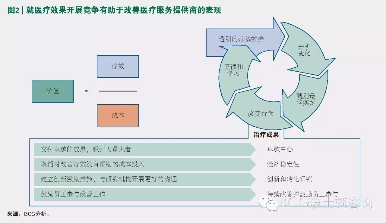 一旦医院建立了适当的以患者为中心的疗效指标体系,同时拥有了一批在经过重新设计的运营流程上高效工作且积极参与变革的临床医生团队,那这家医院就拥有了在快速变化的市场上识别自身优势并将其转化为可持续的差异化竞争优势的资本。通过“在疗效上竞争”,医院可以吸引更多患者,获得更好的经济效益,并建立起对不断变化的医疗市场环境的可持续的应对能力。
