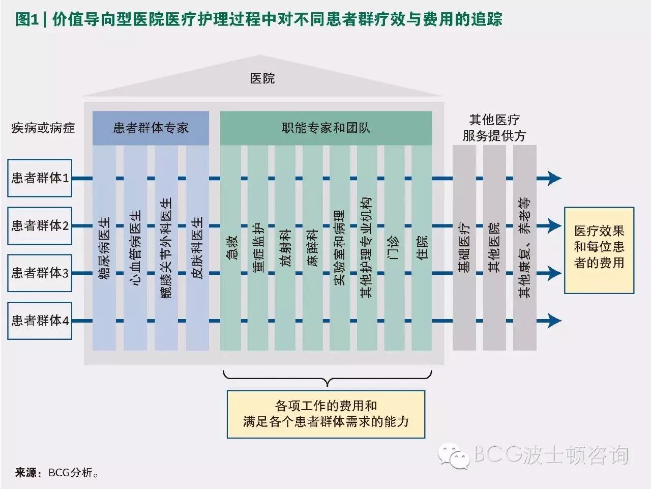 而价值导向型运营模式则完全不同,它的出发点是收集和分享为患者提供的实际疗效数据。首先,高质量的医疗效果是患者希望从医院获得、也是支付方愿意买单的主要原因。第二,疗效数据的透明化可以帮助医院真正理解其绩效表现,从而推动持续改进。第三,专注于医疗价值的提升将迫使管理者和医生思考医疗投入是否真的为改善患者疗效做出了贡献。在价值导向型模式下,医院对某类患者在整个临床路径的活动和成本进行跟踪,从而能更好地确定哪些成本能够(或不能)推动高质量的医疗效果。