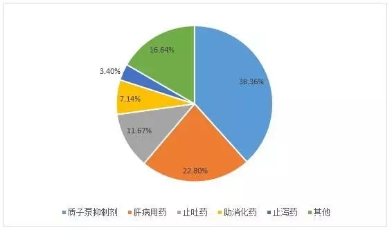 质子泵抑制剂为苯并咪唑类衍生物,能迅速穿过胃壁细胞,使质子泵失活,从而抑制中枢或外周介导的胃酸分泌。目前国内市场上主要质子泵抑制剂有兰索拉唑、泮托拉唑、奥美拉唑、埃索美拉唑、雷贝拉唑等。
