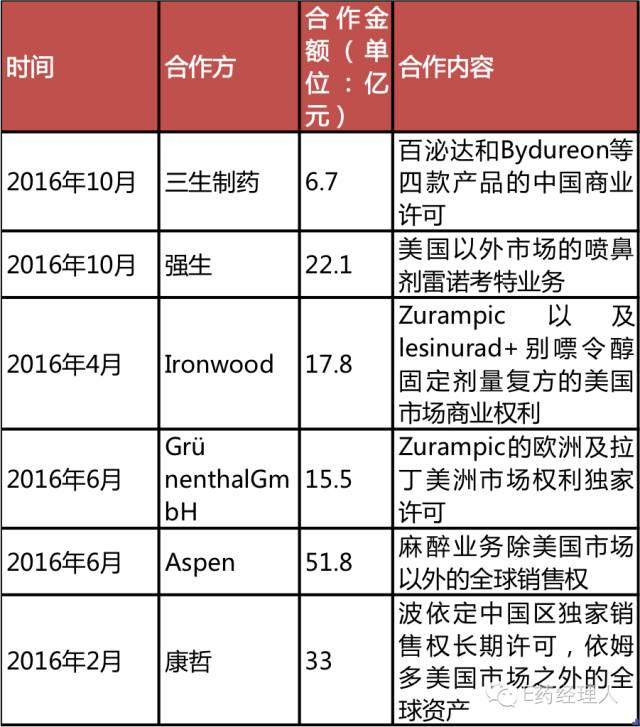 其实除了阿斯利康与中国本土制药开展的这两个商业合作外,GSK、诺华等在2016年也将其部分业务许可给了中国企业。