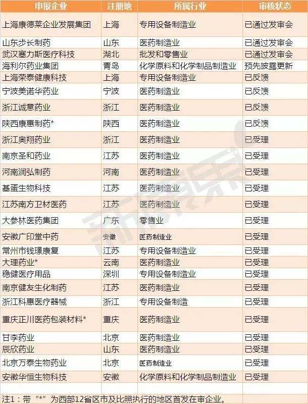 新康界根据截至10月13日更新的《发行监管部首次公开发行股票审核工作流程及申请企业情况》及10月13日之后发审会审核结果,梳理出目前最新医药企业IPO排队情况。附表如下: