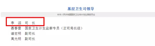 国家卫计委基层卫生司司长一职已变更为由李滔担任
