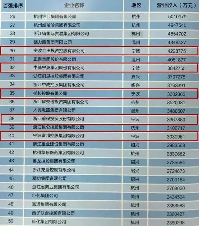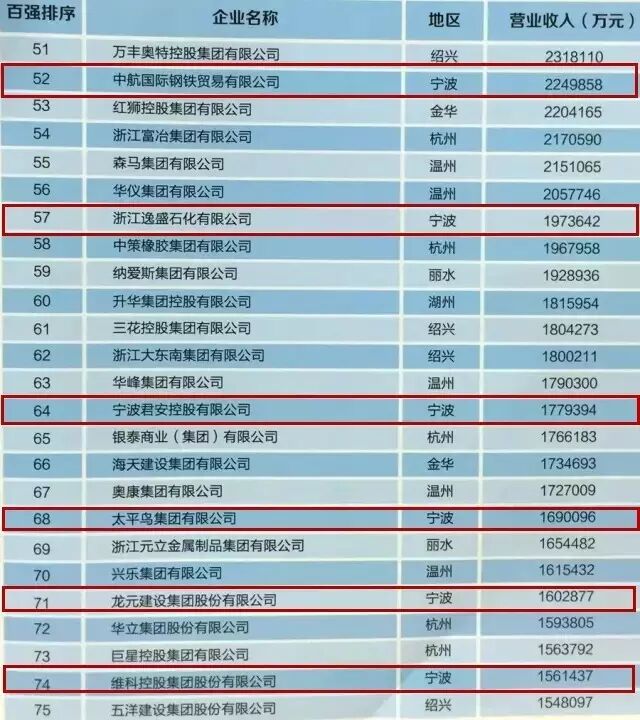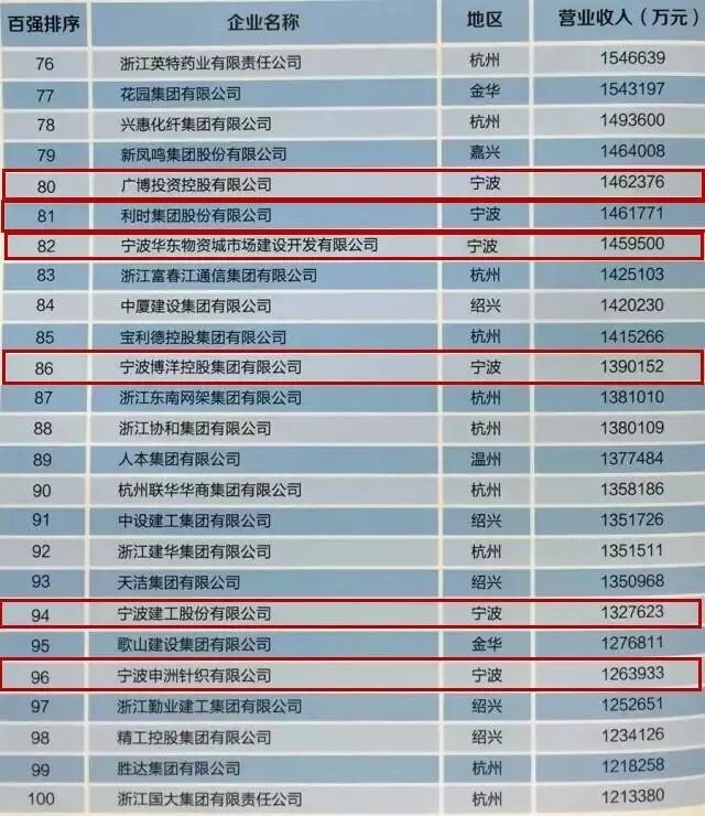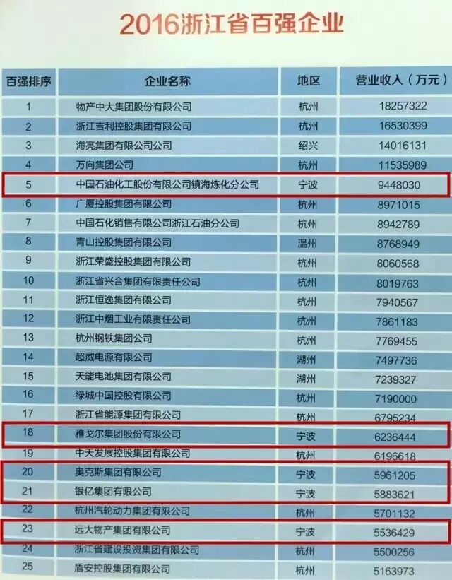 2016浙江省百强企业榜单发布!宁波有22家企业上榜