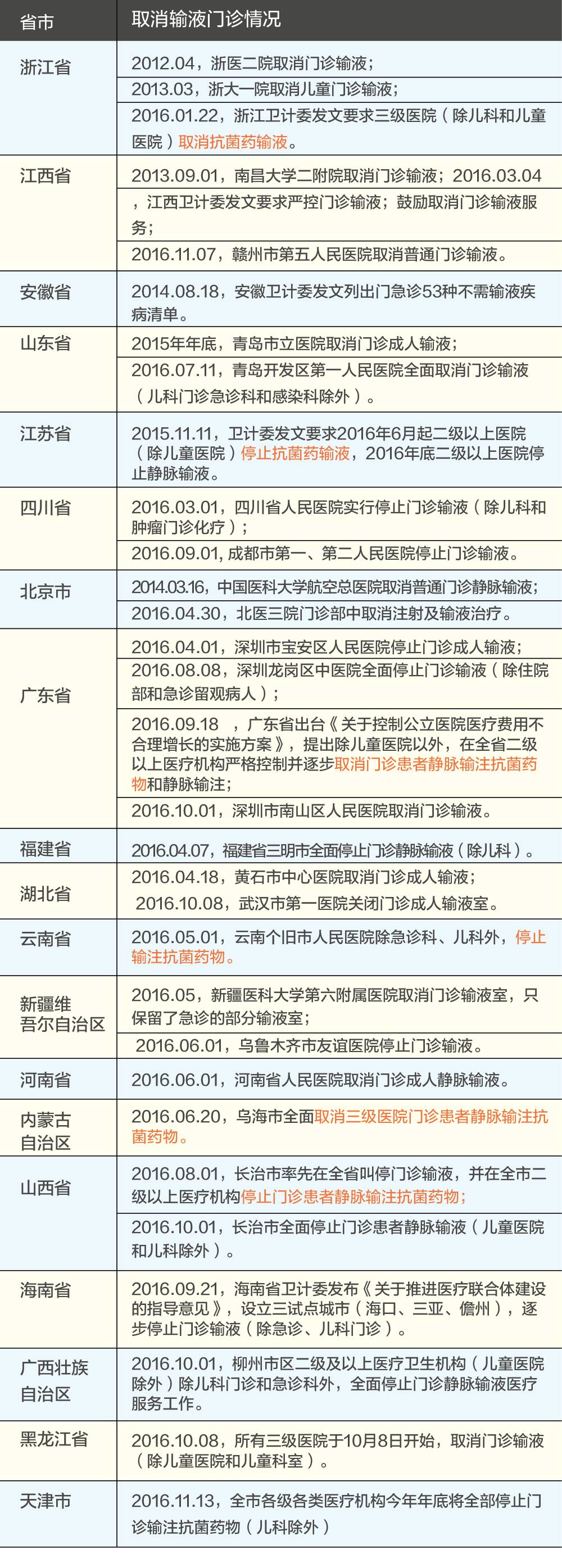 此后,门诊输液“禁令”开始全国蔓延,逐渐覆盖黑龙江全省,福建三明市、浙江、北京、四川等地的大部分二、三级医院。