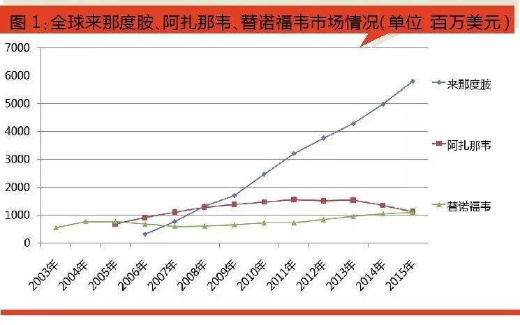 替诺福韦由美国吉利德公司开发,为一种新型核苷酸类逆转录酶抑制剂,2001年经美国FDA批准用于治疗艾滋病,2008年先后被欧盟和美国FDA批准用于治疗乙型肝炎,商品名为“Viread”。替诺福韦是吉利德的明星品种,该药是目前治疗艾滋病和乙肝的特效药。替诺福韦在乙肝的转阴率、耐药问题等方面相比于主要竞品阿德福韦酯、替比夫定和恩替卡韦都有一定优势。