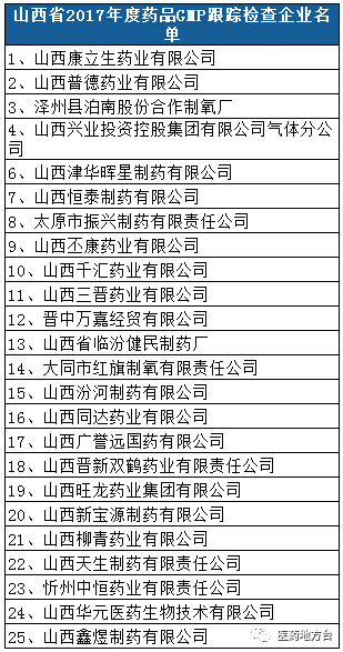 山西省:25家药企被列入GMP跟踪检查企业名单