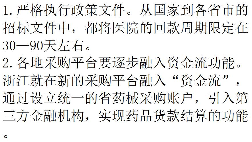 2、把正常药品回款作为倒逼医药配送企业的利益杠杆。看公立医院的家底,有些并不缺钱。之所以拖欠货款,主要还是想倒逼上游企业让步,甚至返点、返利等。