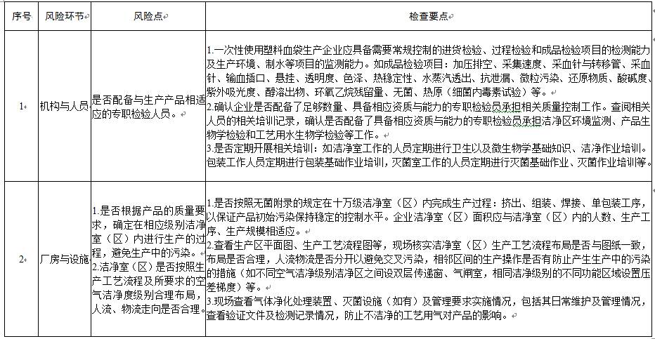 附件:一次性使用塑料血袋等21种医疗器械生产环节风险清单和检查要点