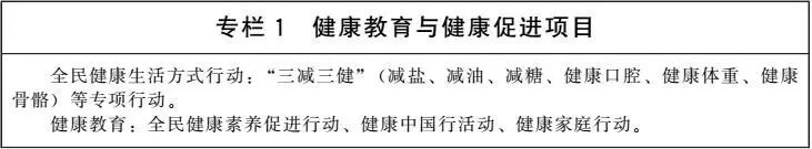 2.倡导健康文明的生活方式。创新和丰富预防方式,贯彻零级预防理念,全面加强幼儿园、中小学营养均衡、口腔保健、视力保护等健康知识和行为方式教育,实现预防工作的关口前移。鼓励机关、企事业单位开展工间健身和职工运动会、健步走、健康知识竞赛等活动,依托村(居)委会组织志愿者、社会体育指导员、健康生活方式指导员等,科学指导大众开展自我健康管理。发挥中医治未病优势,大力推广传统养生健身法。推进全民健康生活方式行动,开展“三减三健”(减盐、减油、减糖、健康口腔、健康体重、健康骨骼)等专项行动,开发推广健康适宜技术和支持工具,增强群众维护和促进自身健康的能力。