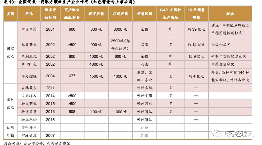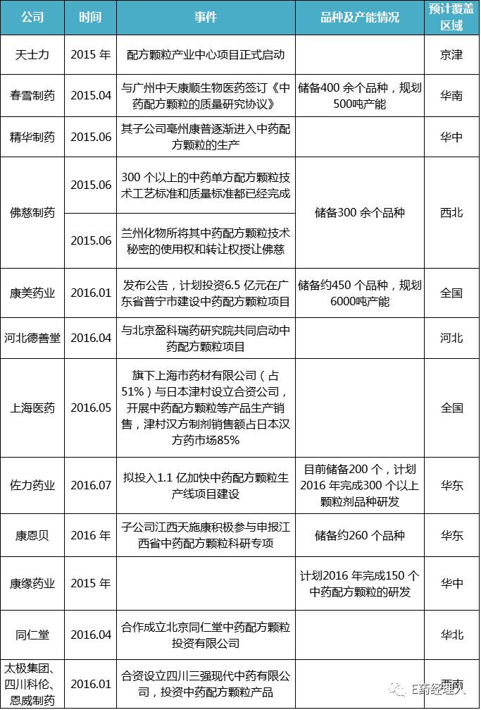 此前,中药配方颗粒一直是国家试点,只批准了6家企业,后来天江药业和一方制药合并,整个中药配方颗粒市场十多年以来被5家企业垄断,这让后续想进入者一直蠢蠢欲动,但囿于政策未放开,所以都是在准备阶段。2015年之后,省级试点被默许,各地已经备战的企业开始上马。