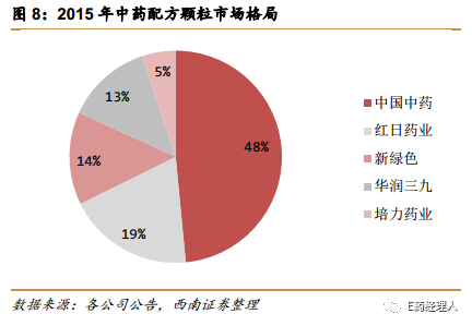 中药配方颗粒自1987年天江药业研发开始,到目前已经30年,长期被中国中药(含天江、一方)、红日药业(康仁堂)、华润三九(金蟾药业)、新绿色、培力药业5家企业垄断。而市场规模从2010年的14.84亿元扩张到2015年的近80亿元,年均复合增速超过40%,是医药行业增速最快的子行业之一。