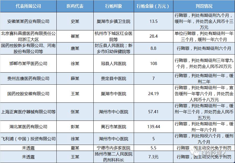 而另外值得注意的一点是,尽管此次医药代表被抓直接引起了诸多医药代表相关从业者的恐慌,但实际上,这也并不是医药代表第一次被抓,此前因为行贿而被捕甚至被判刑的案例也不鲜见。E药经理人对中国裁判文书网目前已公布的信息做了梳理: