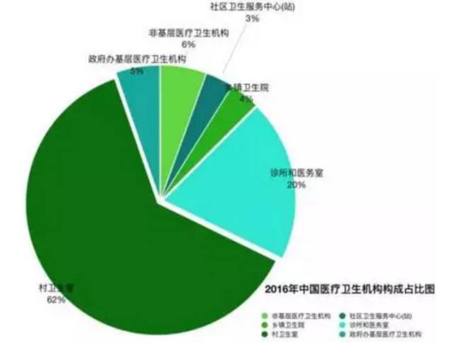 基层医疗卫生机构中,社区卫生服务中心(站)34327个,乡镇卫生院36795个,诊所和医务室201408个,村卫生室638763个。政府办基层医疗卫生机构54379个。