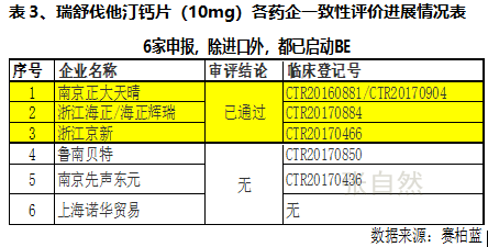 (4)瑞舒伐他汀钙片(10mg)相关企业一致性评价整体进展