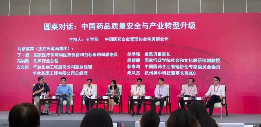 参加本次论坛圆桌对话嘉宾有:国家医疗保障局医药价格和招标采购司联络员丁一磊、康恩贝董事长胡季强、先声药业总裁冯洪刚、国家行政学院社会和文化教研部副教授胡颖廉、华兰生物工程股份公司副总经理/华兰基因工程有限公司总经理安文琪、中国医药企业管理协会专家委员会委员郭泰鸿、杭州神中科技董事长兼CEO朱凤杰。此次论坛主题是“中国药品质量安全与产业转型升级”,杭州神中科技有限公司董事长兼CEO朱凤杰先生作为医药数字化新生代代表在对话中分享了自己的观点: