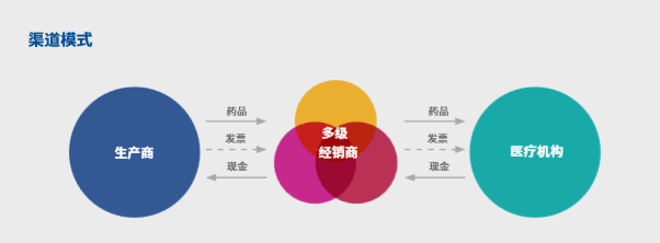 两票制前传统的医药商业模式也可称之为渠道模式,生产商以相对较低的价格将药品销售给经销商,留存在分销渠道中的差额则能冲减经销商的推广费用及其提欧共的与销售相关的服务成本。在经过层层经销商之间的转手交易后,药品最终以远高于出厂价的价格被医疗机构收购。