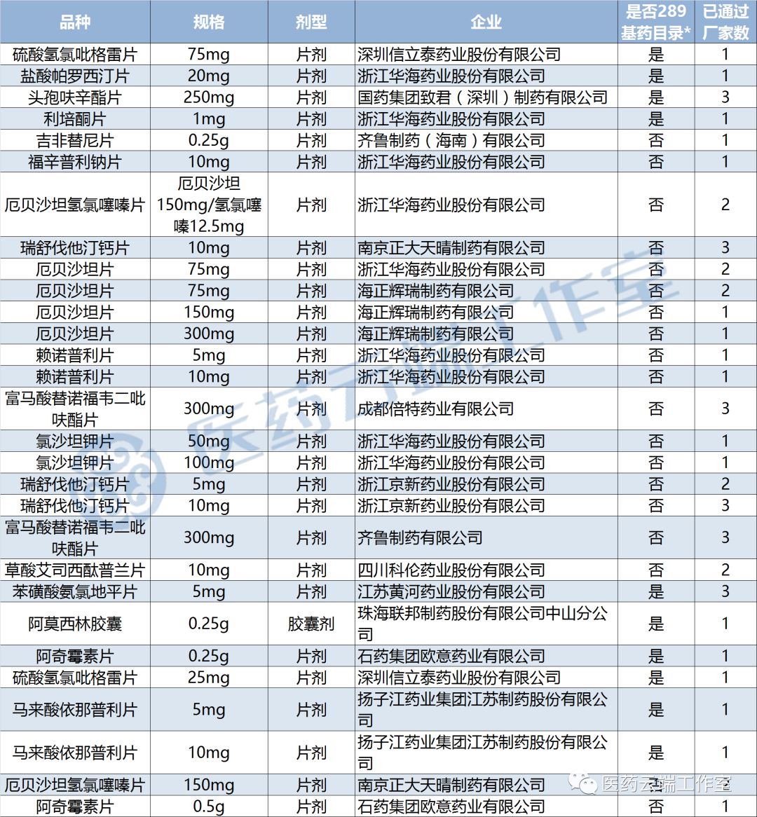 表:通过一致性评价的品种汇总情况表(截止9月10日)