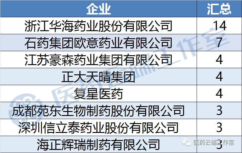 (注:正大天晴集团包括:南京正大天晴制药有限公司和正大天晴药业集团股份有限公司;齐鲁制药包括:齐鲁制药(海南)有限公司和齐鲁制药有限公司;复星医药包括:重庆药友制药有限责任公司、江苏黄河药业股份有限公司、湖南洞庭药业股份有限公司)