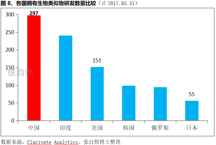 3、中国拥有的生物类似物研发数量位居世界第1