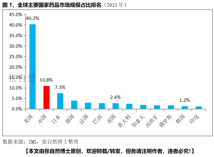 中国的医药市场规模已超越日本成为全球第2大医药市场,2015年中国医药市场规模已占了全球的10.8%。