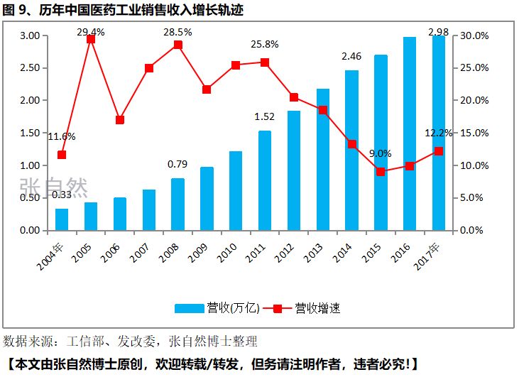 改革开放40年来,中国医药工业销售收入已由1978年的72.8亿元增长到2017年的29826亿元,增长了400多倍。