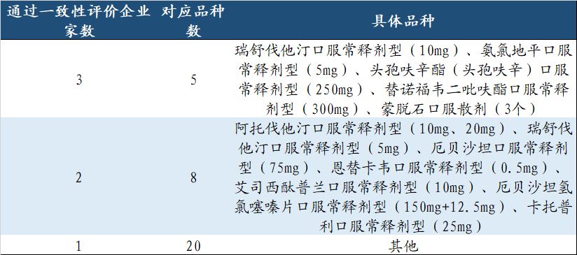 1、全部品种均为有企业通过一致性评价的通用名品种(药品上市目录集),但是口服缓释制剂品种未区分不同剂型(如片剂或胶囊),只对规格有所区分;