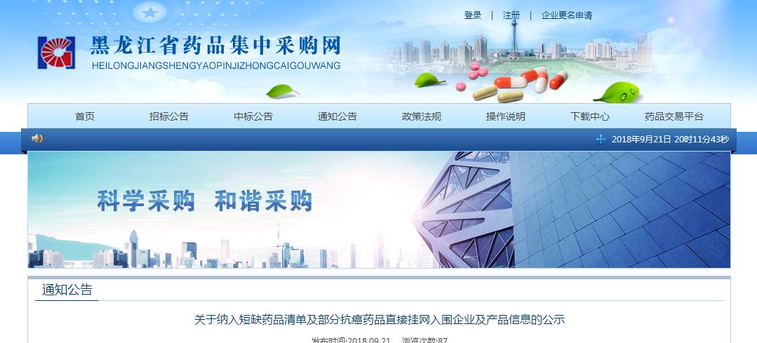 昨日(9月21日),黑龙江省公布了《关于纳入短缺药品清单及部分抗癌药品直接挂网入围及产品信息的公示》。