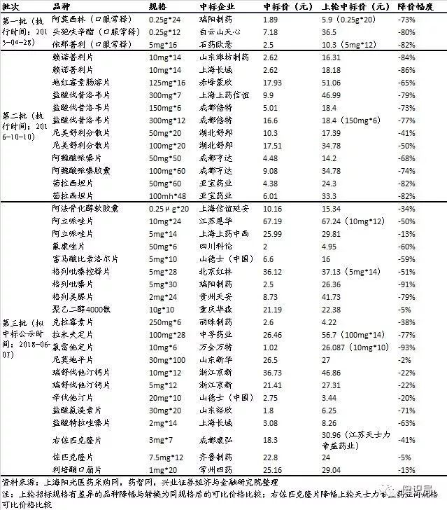 同时,最新公布的第三批带量采购结果,更进一步证实了带量采购在促进仿制药替代原研药方面的实力——不肯大幅降价的进口药“全军覆灭”。(详见>>上海市第三批招标结果已出?拜耳、辉瑞、赛诺菲……没中标!)