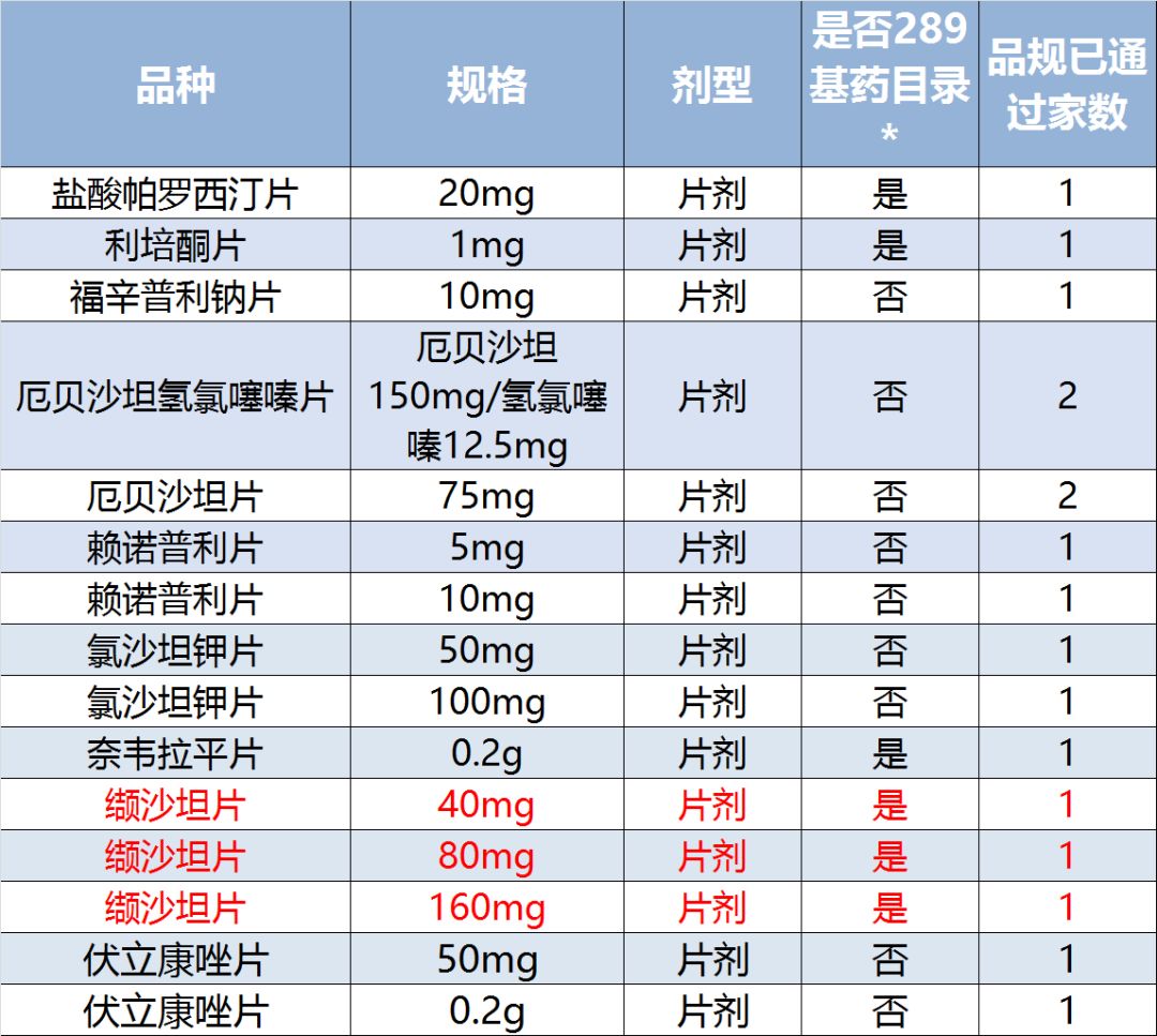 (注:标红的为已通过一致性评价)